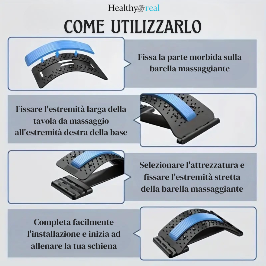 HealthyStretcher è progettato per rilassare e allungare la parte bassa della schiena, offre quattro impostazioni regolabili che ti permettono di personalizzare il supporto in base alle tue esigenze. Grazie al suo design ergonomico, potrai godere di un'esperienza di stretching confortevole e efficace, ideale per alleviare tensioni e migliorare la flessibilità. Riscopri il benessere della tua schiena con questo strumento versatile e pratico!